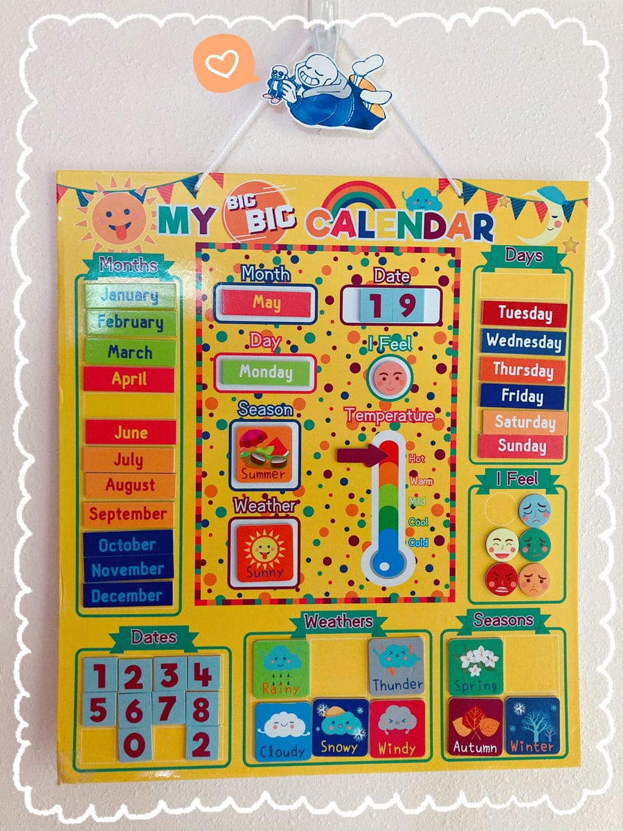 It's just regular paper once again "laminated" in packing tape, but this time with a card stock backing. I wanted it sturdy so I'd feel comfortable writing on it. Those stars are dry erase marker! I was surprised by how cleanly it goes on and wipes off. I do have an actual whiteboard on the back of my magnetic calendar, but I haven't used it since I erased the death-by-Sans tally... Maybe that's 'cause it's so cute, I never wanna flip it around! I even put a tiny Sans on top when I printed him out too small to go on The Wall.