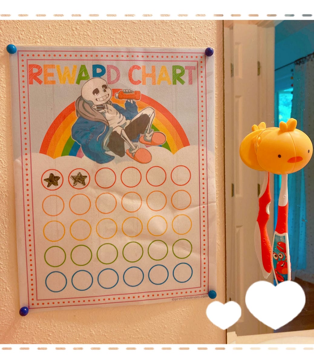 The desired outcome is no longer an "if" or a "when," but a "how." And you know what? It works! I'm pulling out all the stops here because last time I got a cavity filled, the dentist told me they can only do so much. Eventually, your teeth will have the integrity of swiss cheese. Still halfway high on nitrous oxide, I cried and said swiss cheese is the worst kind of cheese because there is inherently less of it. Fast forward through another year of never flossing, and now I have a Sans-themed reward chart on my bathroom wall.