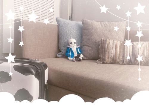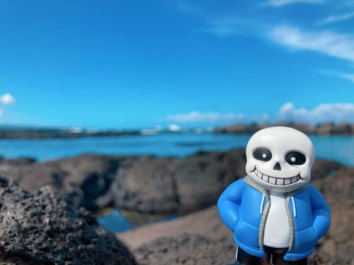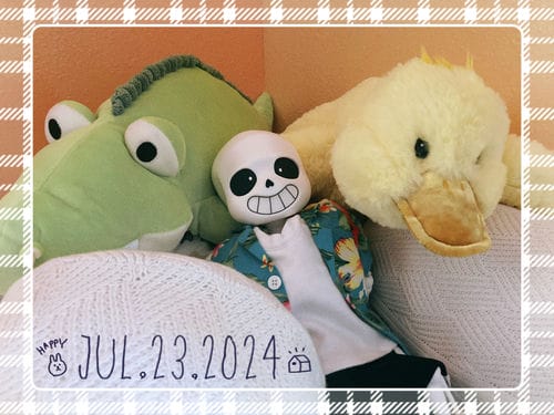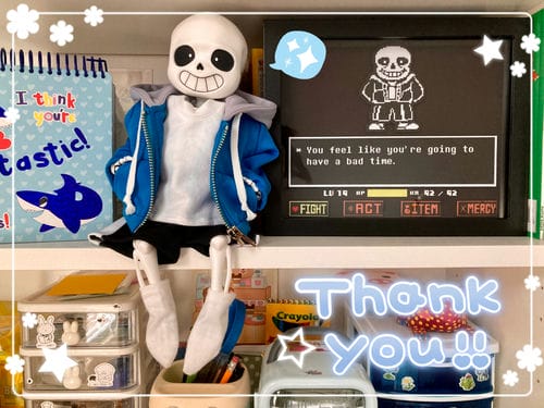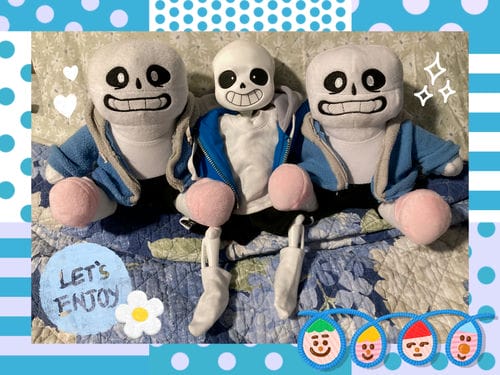 Guest starring: Sans "inaction" figure & plush by Fangamer. Knock-off plush by some factory somewhere